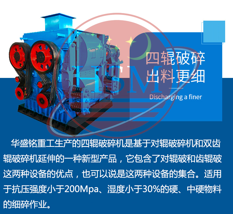 華盛銘重工是一家專注于制造各種礦石破碎設備的企業,生產的四輥破碎機用于實際破碎作業過程中表現出了強大的作業能力,被廣大投資者廣泛應用,華盛銘重工制造生產設備具有破碎比大、自動化處理能力強、多種排料口調節裝置方便快捷、設備耐用耐磨、適用范圍較為廣泛等優點,雙級錘式破碎機深受廣大使用用戶的支持和信賴,同時也歡迎廣大用戶帶料親臨我廠區參觀我們的設備和制造實力,我們提供售前售中售后服務,全程為您服務,讓您無后顧之憂!