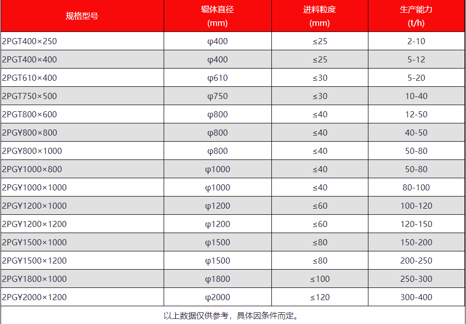 大型對輥式破碎機規格型號: